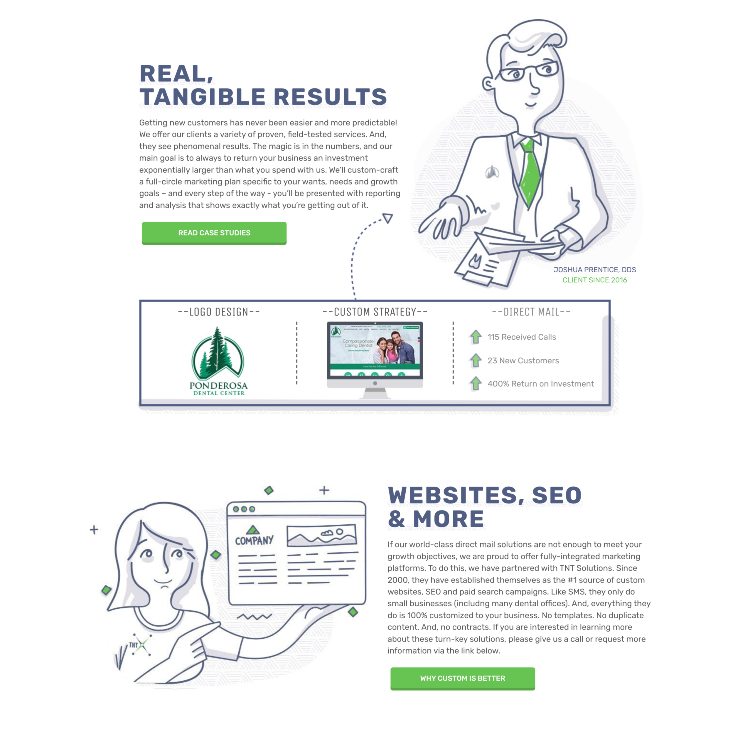 Strategic Marketing Solutions is a full-service direct mail marketing company that helps small businesses attract local customers through design, print, and mailing services, supported by call tracking and campaign analytics.
